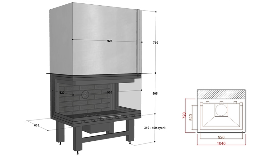 Hürsan - HUDR 95 Lütfen oylayın Oy 1 Oy 2 Oy 3 Oy 4 Oy 5 +HAZNE : TUĞLAKAPAK : ASANSÖR + YANA AÇILIR GÜÇ : 12 - 16 kW RANDIMAN : 73 % BACA : ∅ 250 mm AĞIRLIK : 290 kg BACA KLAPESİ : Dışarıdan Kontrol RENK : Füme OPSİYONEL Çift Cıdar Gövde Fan Motoru Siyah Renk + U TİPİ HAZNELER - DERİN Gösterim: 980 Önceki Sonraki
